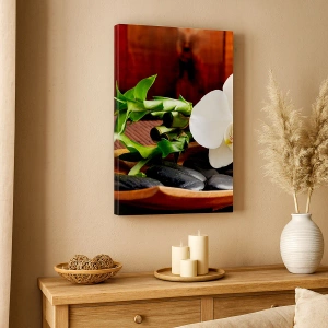 Lærredet er spændt op over rammen. Siderne og kanterne trykkes for at danne en fortsættelse af billedet. Maleriet er klar til at blive hængt op på væggen. Hvert produkt har en bøjle, der er fastgjort til rammen, og et samlesæt (skrue + dyvel).