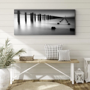 Lærredstryk - Billede på lærred - Grå dales i tågen - 55x100 cm