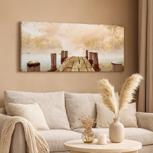 • Landskab, sø, træbro, Landskaber, Broer, Til kontoret, Til arbejdsværelset, Til spisestuen, Til badeværelset, Til hallen, Til stuen, Til soveværelset, Brun, Kvadratisk