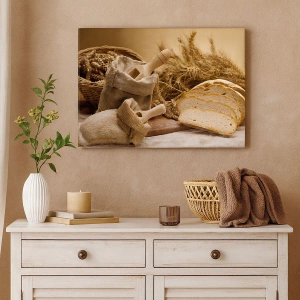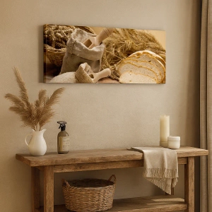 Lærredet er spændt op over rammen. Siderne og kanterne trykkes for at danne en fortsættelse af billedet. Maleriet er klar til at blive hængt op på væggen. Hvert produkt har en bøjle, der er fastgjort til rammen, og et samlesæt (skrue + dyvel).