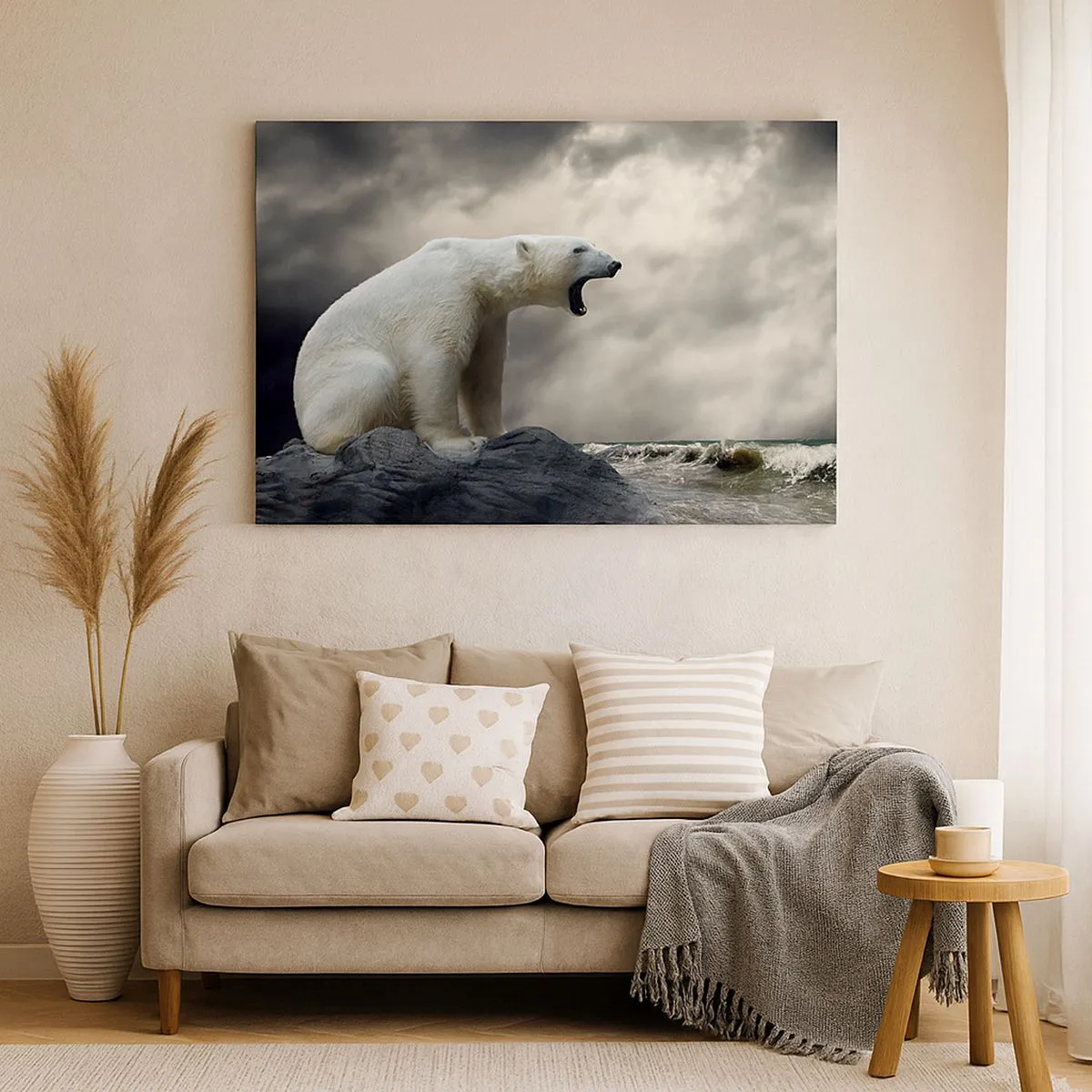 Vægkunst - Titel Ukendt - Isbjørn på klipper ved et stormfuldt hav