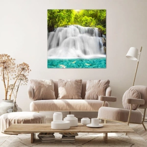 Et vandfald er et symbol på friskhed og uberørt natur. Turkis vand, omgivet af grønne områder, giver hele maleriet en eksotisk karakter og transporterer beskueren til tropiske områder, langt fra byens travlhed.