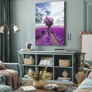 Lærredstryk - Billede på lærred - Et ensomt træ på en mark i en intens lyserød nuance - 70x50cm - Hedeslette - charmerende - Moderne vægdekoration til stue og soveværelse ARTTOR