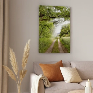Lærredet er spændt op over rammen. Siderne og kanterne trykkes for at danne en fortsættelse af billedet. Maleriet er klar til at blive hængt op på væggen. Hvert produkt har en bøjle, der er fastgjort til rammen, og et samlesæt (skrue + dyvel).