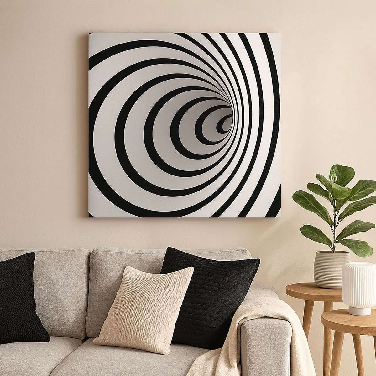 Lærredet er spændt op over rammen. Siderne og kanterne trykkes for at danne en fortsættelse af billedet. Maleriet er klar til at blive hængt op på væggen. Hvert produkt har en bøjle, der er fastgjort til rammen, og et samlesæt (skrue + dyvel).