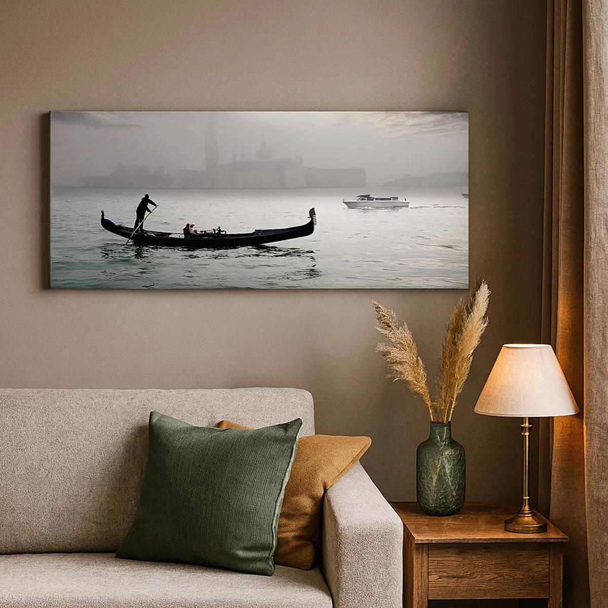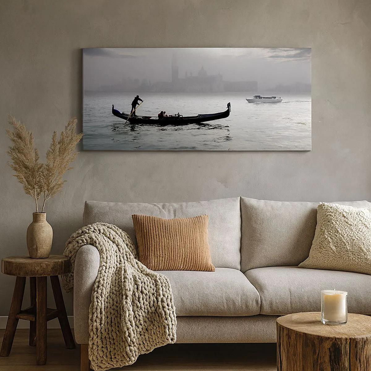 Lærredstryk - Billede på lærred - En fabelagtig by af vand og tåge - 90x30 cm