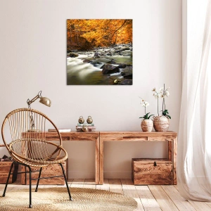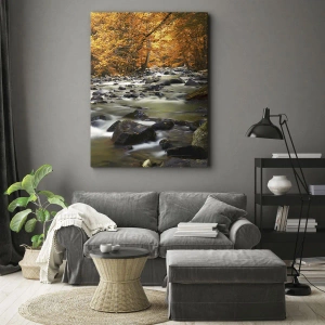 Lærredstryk - Billede på lærred - Et vandløb i den gyldne skov - 120x50 cm