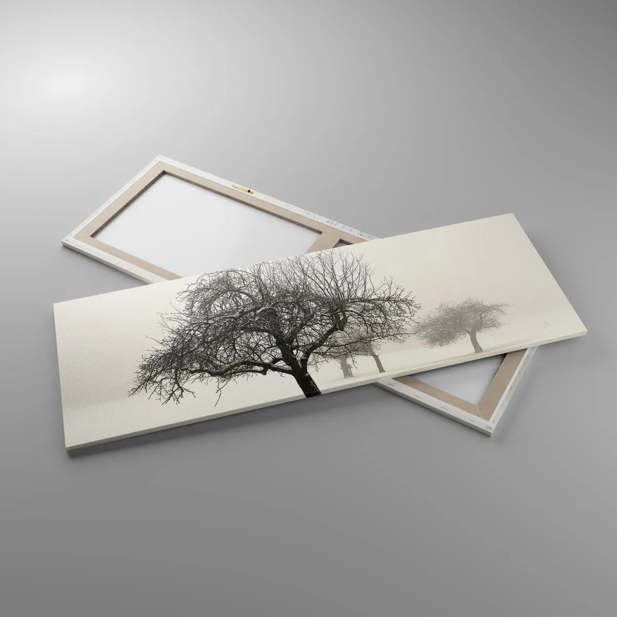 Lærredet er spændt op over rammen. Siderne og kanterne trykkes for at danne en fortsættelse af billedet. Maleriet er klar til at blive hængt op på væggen. Hvert produkt har en bøjle, der er fastgjort til rammen, og et samlesæt (skrue + dyvel).