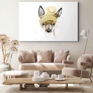Lærredet er spændt op over rammen. Siderne og kanterne trykkes for at danne en fortsættelse af billedet. Maleriet er klar til at blive hængt op på væggen. Hvert produkt har en bøjle, der er fastgjort til rammen, og et samlesæt (skrue + dyvel).