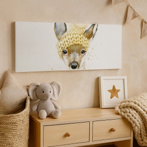 Lærredstryk - Billede på lærred - Til vinter i en sneklædt skov - 45x80 cm
