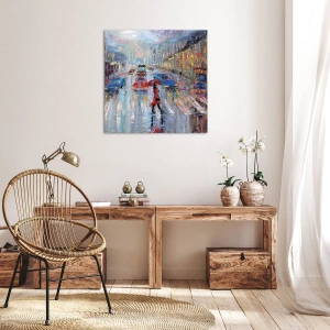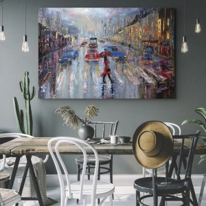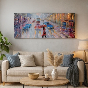 Lærredstryk - Billede på lærred - Regnfuld eftermiddag i byen - 65x120 cm