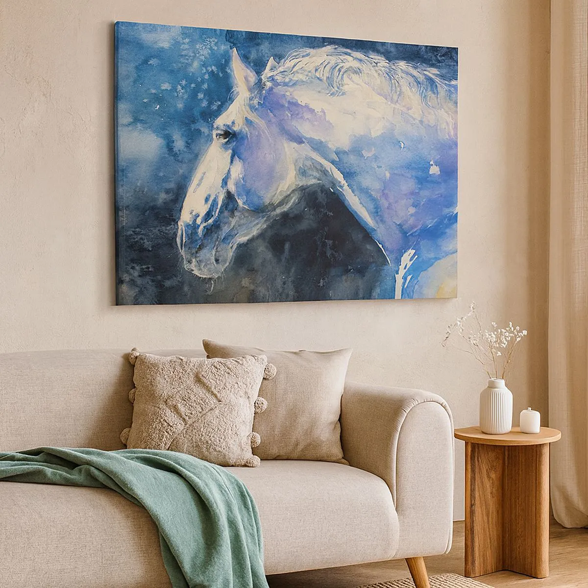 Lærredstryk - Billede på lærred - Portræt i et blåt skær - 120x80 cm