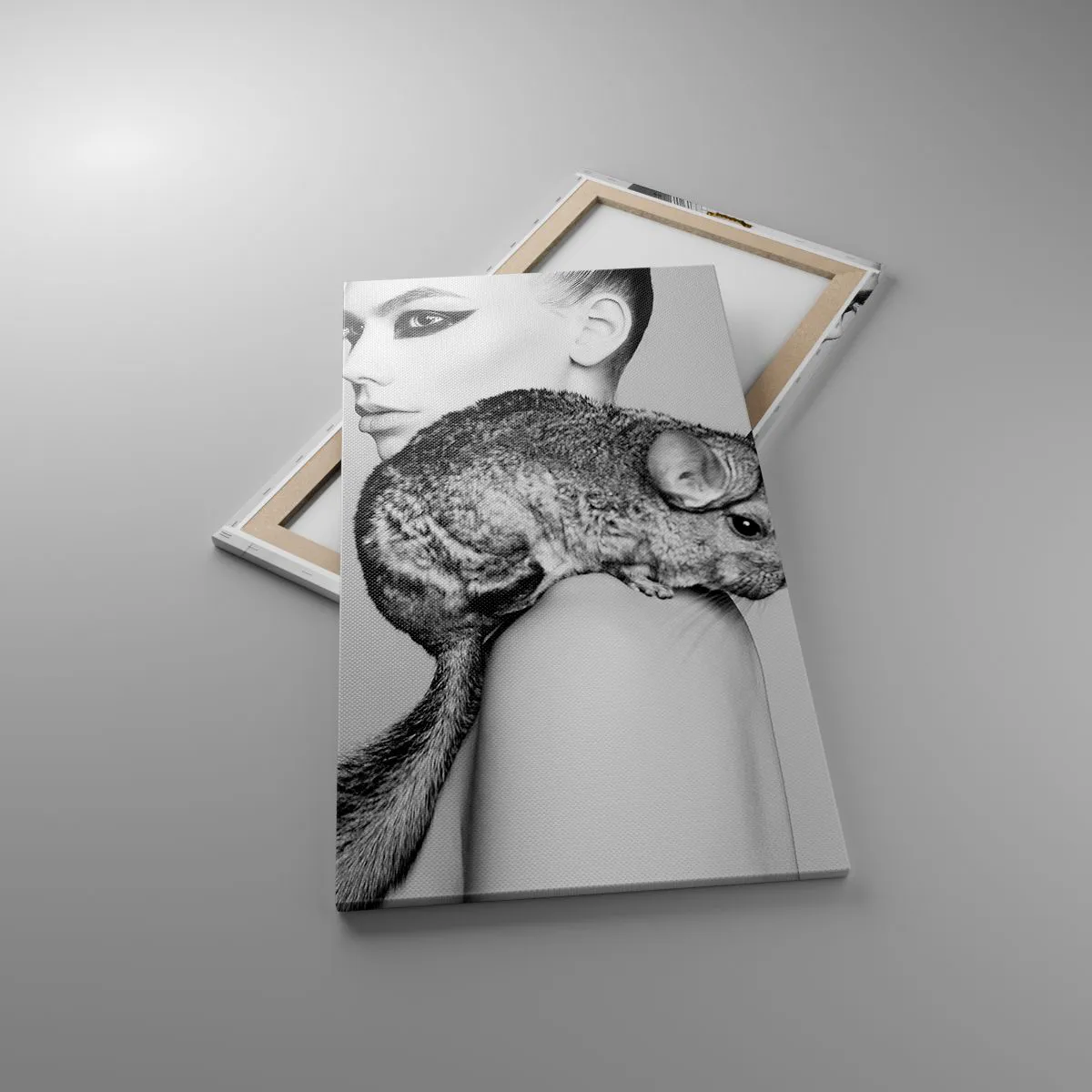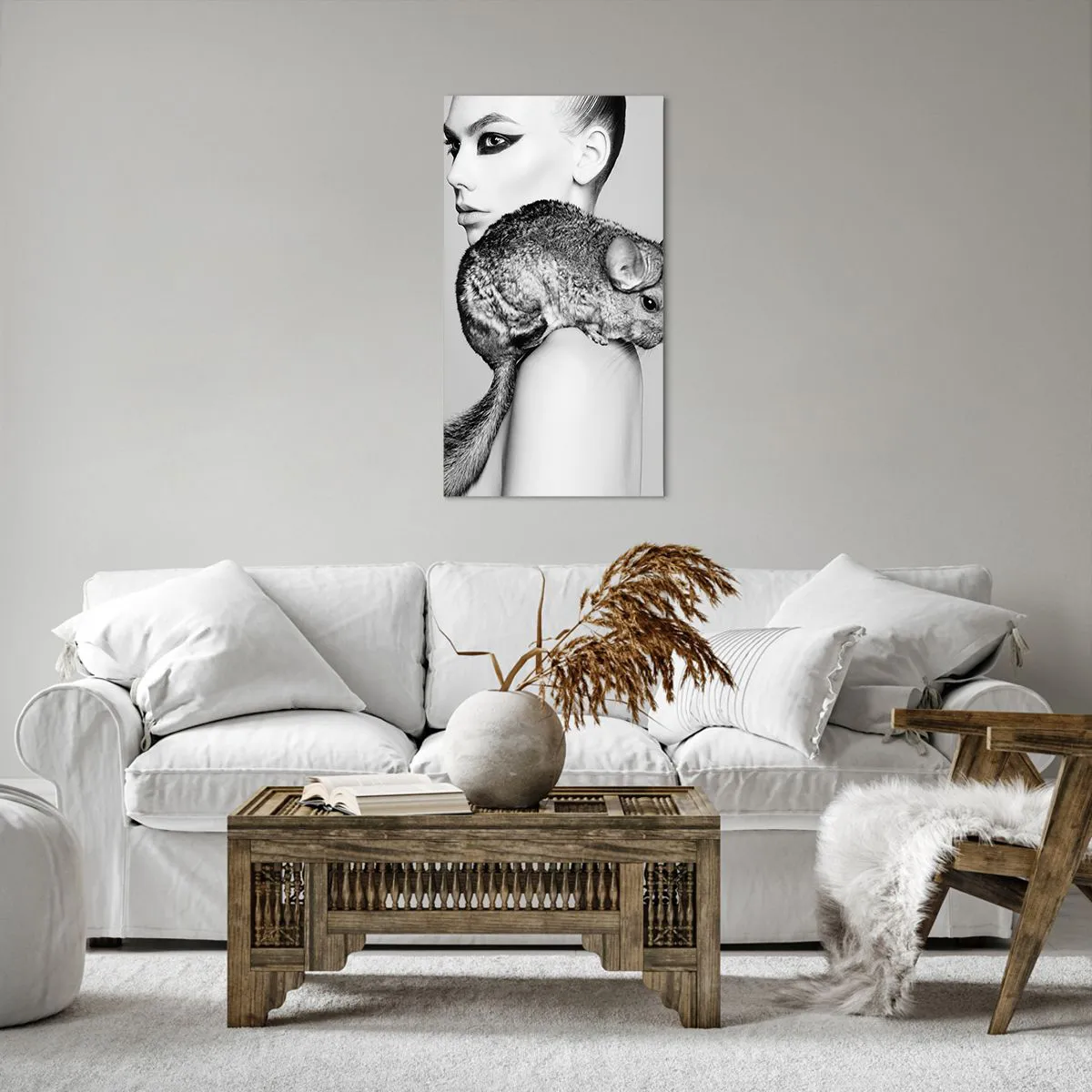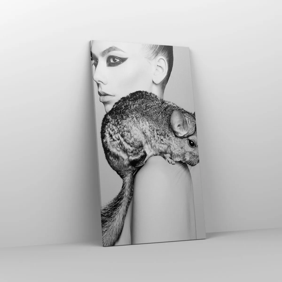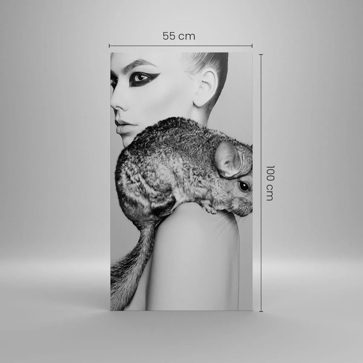 Lærredstryk - Billede på lærred - Dame med en chinchilla - 55x100 cm