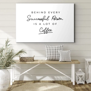 Lærredstryk - Billede på lærred - Et minimalistisk citat om succes og kaffe på en hvid baggrund. - 70x50cm - Hemmeligheden bag succes - Moderne vægdekoration til stue og soveværelse ARTTOR