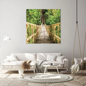 Vægkunst - Hængende i Grønt - En hængebro i en tropisk skov fuld af grønt