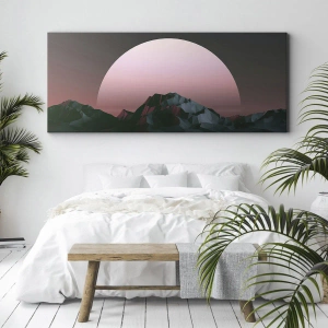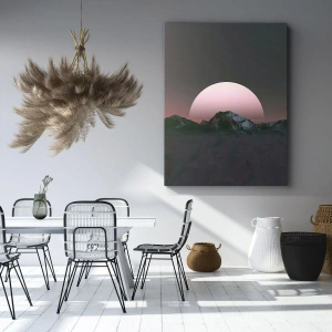 Maleriet kombinerer perfekt elementer fra digital kunst og landskabskunst og skaber en unik komposition. Bjergenes geometriske former kombineret med den atmosfæriske himmel skaber et inspirerende landskab, der passer perfekt til interiører i en minimalistisk, moderne eller industriel stil.