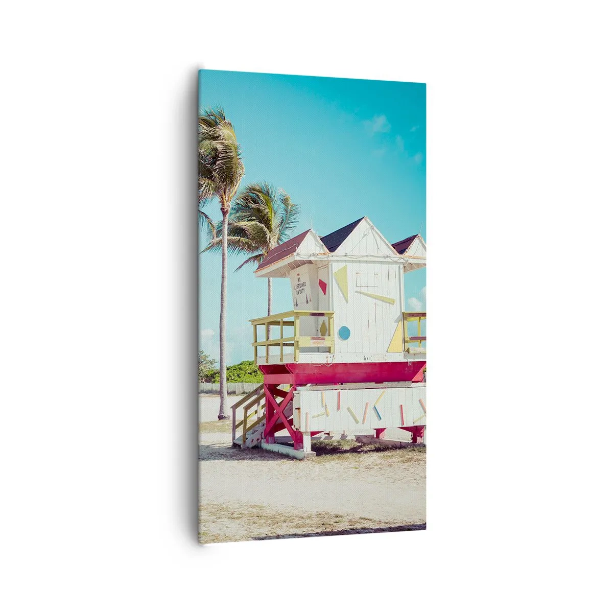 Lærredet er spændt op over rammen. Siderne og kanterne trykkes for at danne en fortsættelse af billedet. Maleriet er klar til at blive hængt op på væggen. Hvert produkt har en bøjle, der er fastgjort til rammen, og et samlesæt (skrue + dyvel).
