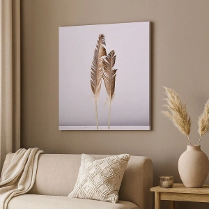 Lærredet er spændt op over rammen. Siderne og kanterne trykkes for at danne en fortsættelse af billedet. Maleriet er klar til at blive hængt op på væggen. Hvert produkt har en bøjle, der er fastgjort til rammen, og et samlesæt (skrue + dyvel).