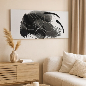 Lærredet er spændt op over rammen. Siderne og kanterne trykkes for at danne en fortsættelse af billedet. Maleriet er klar til at blive hængt op på væggen. Hvert produkt har en bøjle, der er fastgjort til rammen, og et samlesæt (skrue + dyvel).