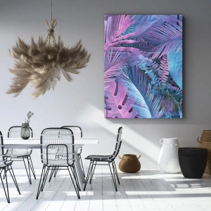 • Abstrakt, blade, tropisk plante, Botanik, Natur, Pastel, Til kontoret, Til studiet, Til spisestuen, Til hallen, Til stuen, Til soveværelset, Blå, Pink, Lodret