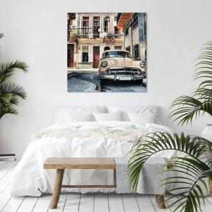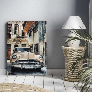 Dette lærredstryk på 70x50 cm med titlen "Sjesta i Havana" forestiller en klassisk bil parkeret mod en baggrund af byarkitektur. Retrostilen og de omhyggeligt reproducerede detaljer skaber en unik atmosfære, der passer perfekt til interiører indrettet i både vintage og moderne stilarter.