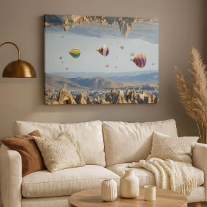 Lærredet er spændt op over rammen. Siderne og kanterne trykkes for at danne en fortsættelse af billedet. Maleriet er klar til at blive hængt op på væggen. Hvert produkt har en bøjle, der er fastgjort til rammen, og et samlesæt (skrue + dyvel).