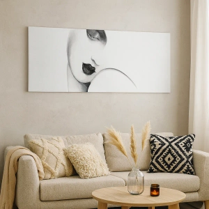 Lærredstryk - Billede på lærred - Et diskret portræt af en kvinde i monokrom stil - 70x50cm - I Lempickas stil - Moderne vægdekoration til stue og soveværelse ARTTOR