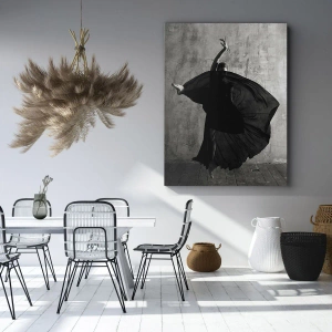Lærredet er spændt op over rammen. Siderne og kanterne trykkes for at danne en fortsættelse af billedet. Maleriet er klar til at blive hængt op på væggen. Hvert produkt har en bøjle, der er fastgjort til rammen, og et samlesæt (skrue + dyvel).