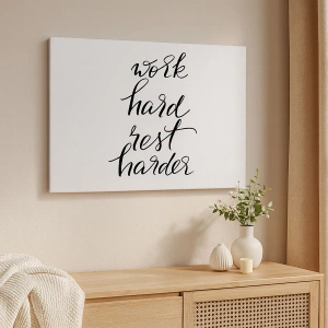 Lærredet er spændt op over rammen. Siderne og kanterne trykkes for at danne en fortsættelse af billedet. Maleriet er klar til at blive hængt op på væggen. Hvert produkt har en bøjle, der er fastgjort til rammen, og et samlesæt (skrue + dyvel).