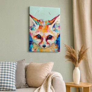 - Dette maleri forestiller et farverigt portræt af en fennec-ræv i ekspressiv maleristil. Denne udtryksfulde komposition er perfekt som dekoration til en stue, et soveværelse eller et kontor.