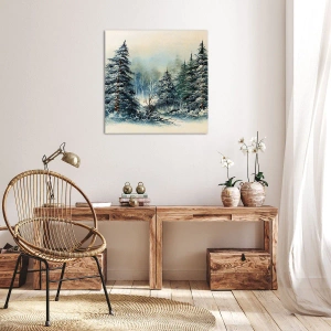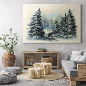 Tilføj et unikt præg til dit interiør med dette maleri. Dets vintermotiv og diskrete farver harmonerer med en række forskellige arrangementer og bringer skønhed og en festlig atmosfære til dit rum.