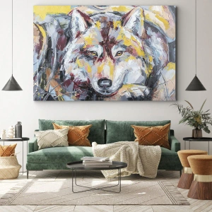 Maleriet "Ulv i farver" er ikke kun et æstetisk dekorativt element, men også et udtryk for moderne stil og dristighed inden for indretning. Det passer perfekt ind i både minimalistiske og mere klassiske arrangementer og tilføjer en unik karakter.