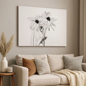 Lærredet er spændt op over rammen. Siderne og kanterne trykkes for at danne en fortsættelse af billedet. Maleriet er klar til at blive hængt op på væggen. Hvert produkt har en bøjle, der er fastgjort til rammen, og et samlesæt (skrue + dyvel).