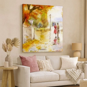 Lærredstryk - Billede på lærred - Romantisk efterår i parken - 140x50 cm