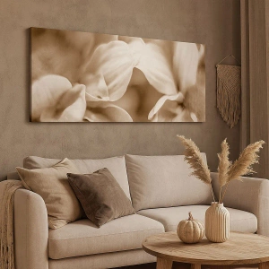 - Dette maleri forestiller et nærbillede af blomster i en delikat sepiatone. Perfekt til diskrete og elegante interiører. Lærredstrykket måler 70x50 cm.