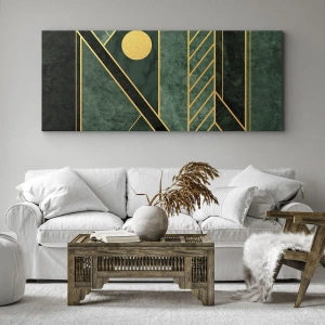 Lærredstryk - Billede på lærred - Dynamikken i guld og azurblå - 55x100 cm