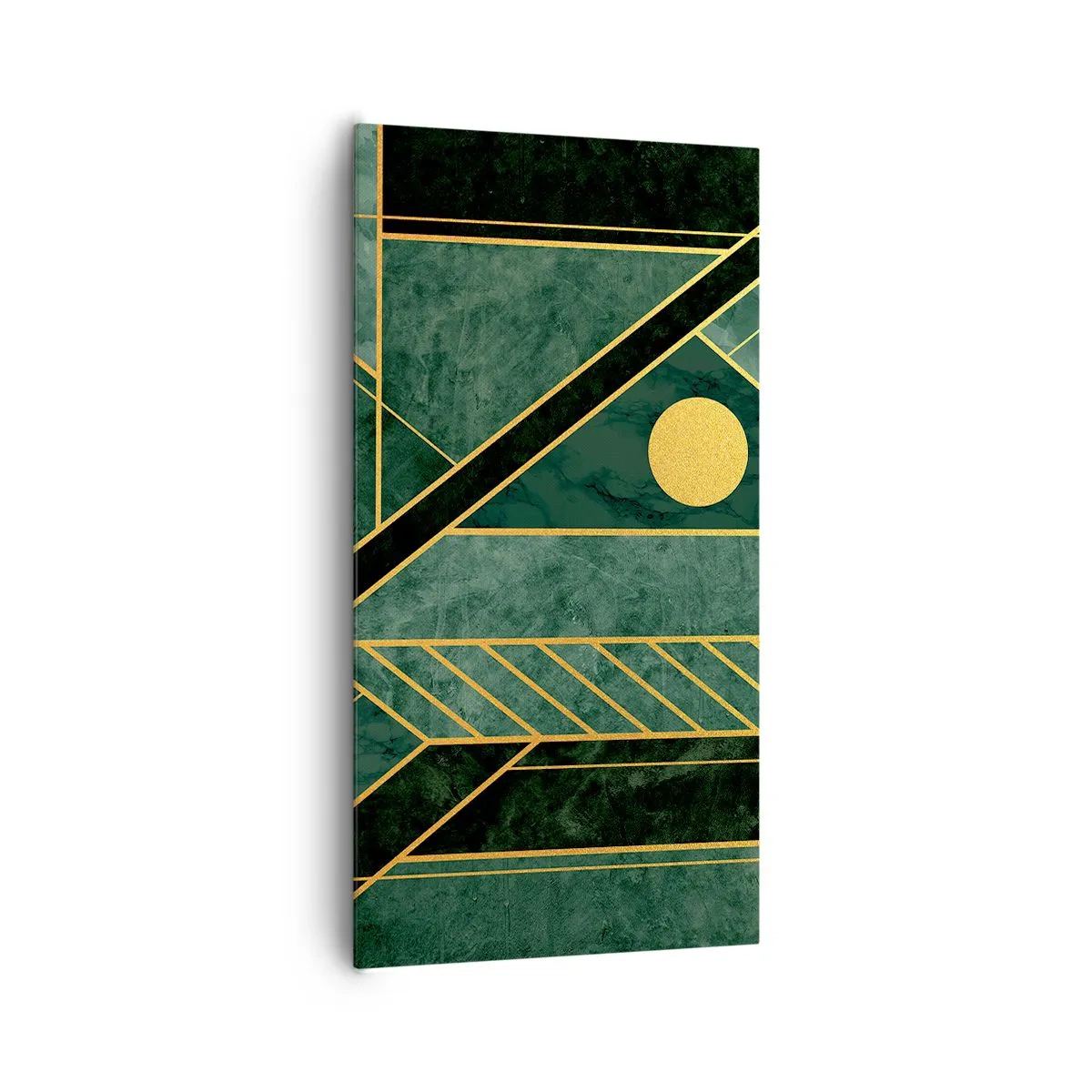 Lærredstryk - Billede på lærred - Dynamikken i guld og azurblå - 65x120 cm