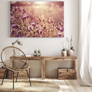 Lærredstryk - Billede på lærred - Eng i lyset af den nedgående sol - 70x50cm - Før sommeren er forbi - Moderne vægdekoration til stue og soveværelse ARTTOR