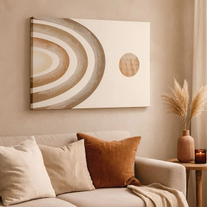 Lærredstryk - Billede på lærred - Geometrisk planetarisk motiv i brune nuancer - 70x50cm - I en galakse langt, langt væk - Moderne vægdekoration til stue og soveværelse ARTTOR