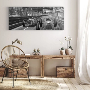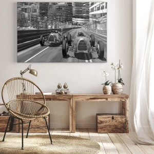 Lærredstryk - Billede på lærred - Monokrom retro bilracerscene - 70x50cm - Der var engang i Monte Carlo - Moderne vægdekoration til stue og soveværelse ARTTOR