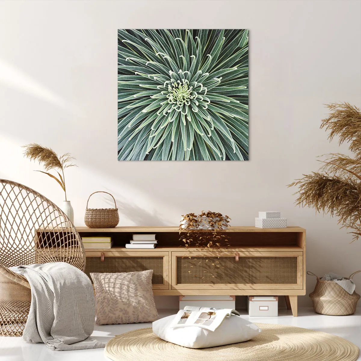Lærredet, der bruges til vores malerier, er et vandtæt stof af høj kvalitet med en vægt på 240g/m2. Den er dedikeret til professionelle plottere, der muliggør produktion af økologiske print. Vi bruger økologisk, lugtfri og holdbar blæk med dyb farvemætning