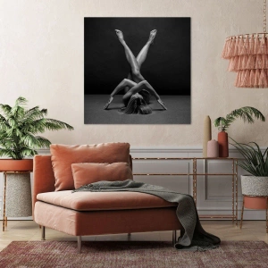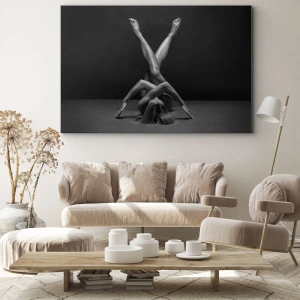 Nøgenhedens geometri er et usædvanligt stilfuldt lærredstryk, der skildrer en kvindelig silhuet på en kunstnerisk måde. De sort-hvide toner giver værket en unik elegance, og kroppens geometriske arrangement tiltrækker øjet og understreger harmoni og proportioner. Dette kunstværk vil se perfekt ud i minimalistiske og moderne interiører.