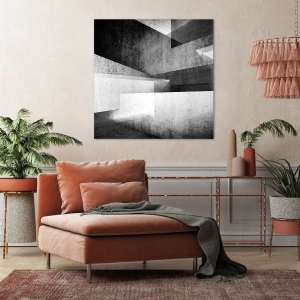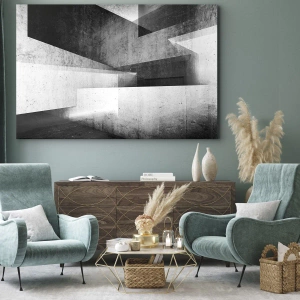 Lærredstryk - Billede på lærred - Geometriske former i en monokromatisk komposition - 70x50cm - Rummet struktur - Moderne vægdekoration til stue og soveværelse ARTTOR