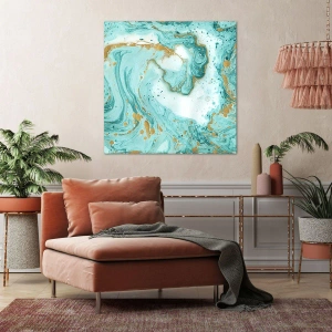 - En abstrakt komposition af turkis marmor med gulddetaljer, perfekt til moderne og elegante interiører. Dette lærredstryk på 70x50 cm tilføjer luksus og stil til ethvert rum.