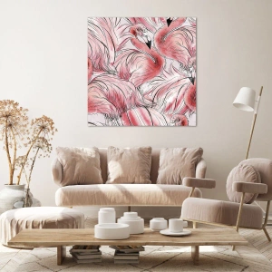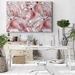 Lærredstryk - Billede på lærred - Delikate tegninger af lyserøde flamingoer - 70x50cm - Fugle corps de ballet - Moderne vægdekoration til stue og soveværelse ARTTOR