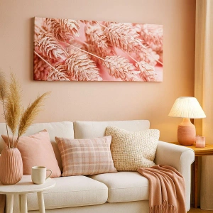 Lærredet er spændt op over rammen. Siderne og kanterne trykkes for at danne en fortsættelse af billedet. Maleriet er klar til at blive hængt op på væggen. Hvert produkt har en bøjle, der er fastgjort til rammen, og et samlesæt (skrue + dyvel).