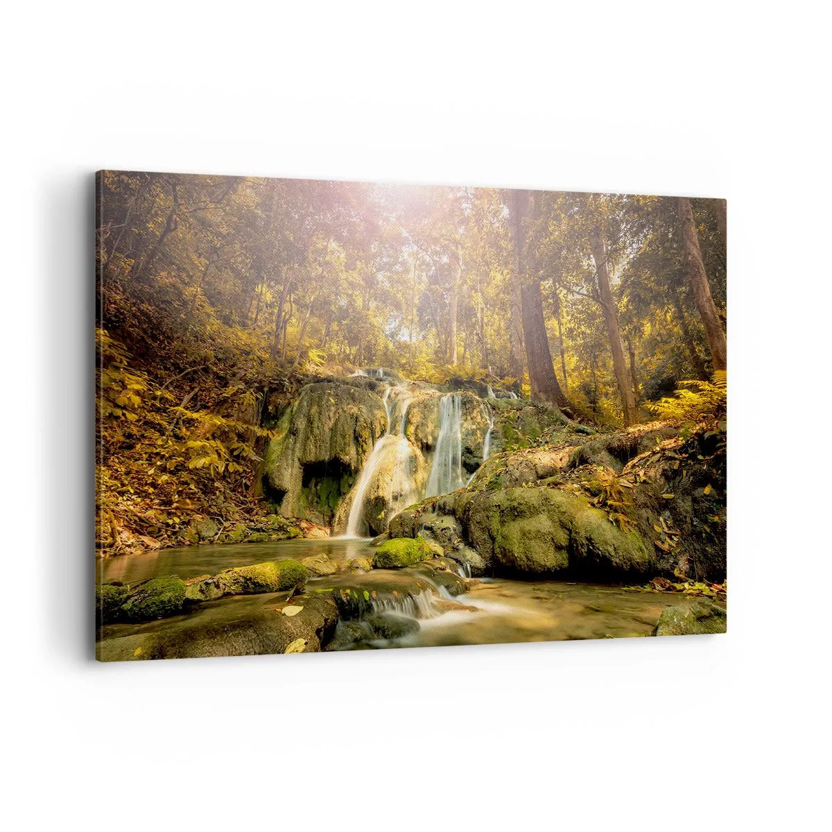 Lærredstryk - Billede på lærred - Skovkaskade i grønt - 100x70 cm