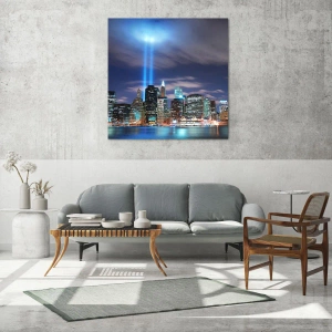 Billede på glas - Ræk mod himlen med lys - 120x80 cm