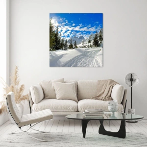 Billede på glas - I sne og solskin - 100x40 cm