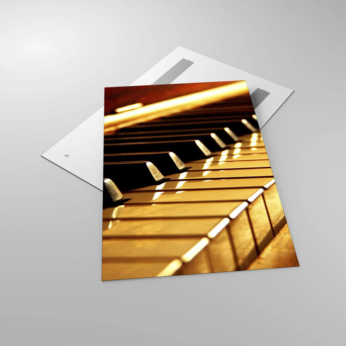 Billedet på glas er lavet af 4 mm tykt glas. Glassets kanter har et mat trapezformet snit. Billedet er sikkert at bruge og klar til at hænge op - der er metalophæng fastgjort på bagsiden af billedet og skumafstandsstykker til at regulere billedets jævne afstand fra væggen.